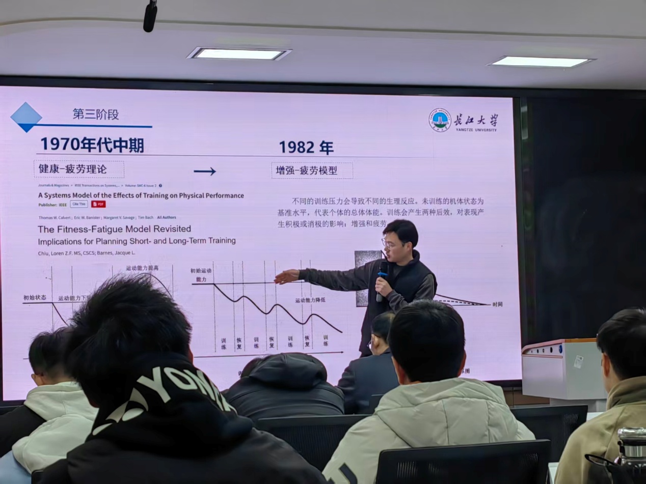 现场学生踊跃互动,体育教育专业同学问及“人工智能如何衔接本土理论”,李明博士回应:“人工智能可通过运动数据建模,既留存本土训练经验的核心逻辑,又能用智能监测补足恢复环节的科学评估——这正是‘技术赋能传承’的路径。”不少学生表示,这场报告打破了“本土与西方理论对立”的认知:“原来传统原则能靠人工智能升级,不是只能‘换赛道’。”李明博士最后展望:期待同学们兼顾理论传承与技术创新,让运动训练既扎根本土实践,又借力智能工具突破。