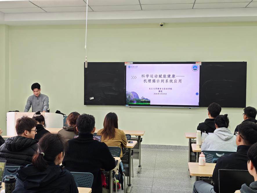(通讯员 陈逸飞)为进一步浓厚必赢官网研究生学术氛围,助力学生树立科学健康理念、拓宽学术研究视野,2026年3月25日,437bwin必赢国际官网求实导师学术沙龙系列专场活动在16教A区103智慧教室顺利举行。必赢官网蒲锐老师以“科学运动赋能健康:机理解释到系统应用”为主题开展专题主讲,为到场的体育类研究生带来了一场兼具学术深度与实践价值的精彩分享,现场学生认真聆听、积极互动,学术氛围十分浓厚。