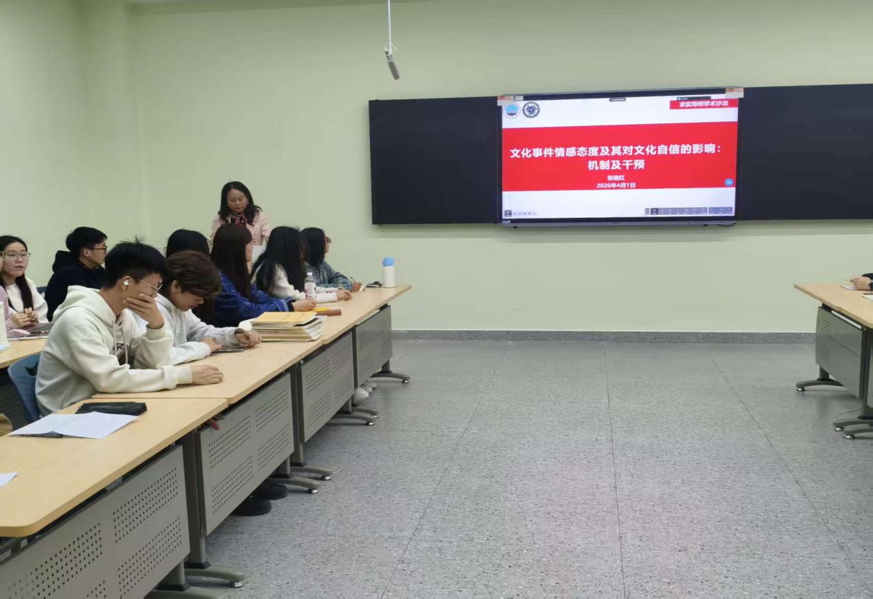 首先,张艳红教授带来题为“文化事件情感态度及其对文化自信的影响:机制及干预”的讲座。她结合相关实证研究,系统界定文化自信、情感态度等核心概念,围绕文化事件引发的积极与消极情感反应,深入剖析其作用路径,并依托文化认同理论、社会认知理论搭建完整研究框架。