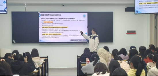 在诚信应考教育环节,班主任明确了四六级考试及期末考试的时间安排,督促同学们合理规划复习。结合《437bwin必赢国际官网学生违纪处分办法》《国家教育考试违规处理办法》,班主任详细解读了考试违纪、作弊的具体情形与严肃后果:考试违纪将取消科目成绩或给予警告以上处分;考试作弊将取消当次各科成绩或给予留校察看处分;代考、使用通讯设备作弊、组织作弊等严重行为,将直接开除学籍,情节严重者还需承担法律责任。为强化警示效果,班主任分享了多起典型案例,包括437bwin必赢国际官网学生因代考、手机传答案被开除学籍,四六级考试中撕毁或替换答题卡受处分,以及研究生入学考试组织作弊被判刑的事例,提醒同学们摒弃侥幸心理,坚守诚信底线。