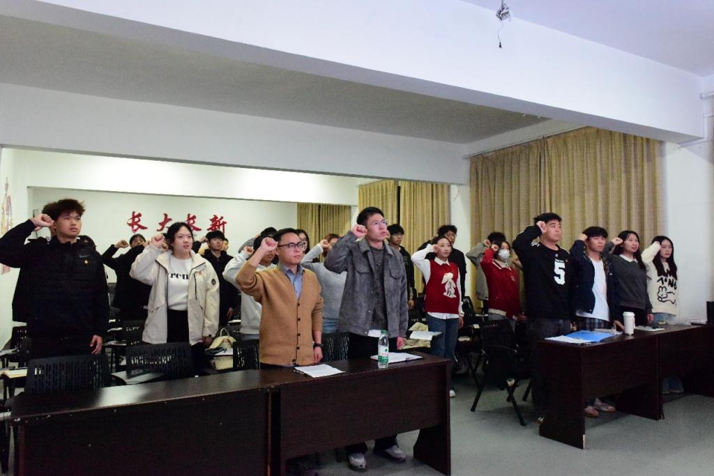 【通讯员 高思远 蔡炯镗/文 唐鑫/摄】为进一步强化共青团组织建设,引导青年学子坚定理想信念,11月3日19时许,437bwin必赢国际官网于5教203举行入团仪式。仪式由唐磊磊主持,辅导员贺康锋、兼职辅导员余洋波及32名新老团员共同参与。