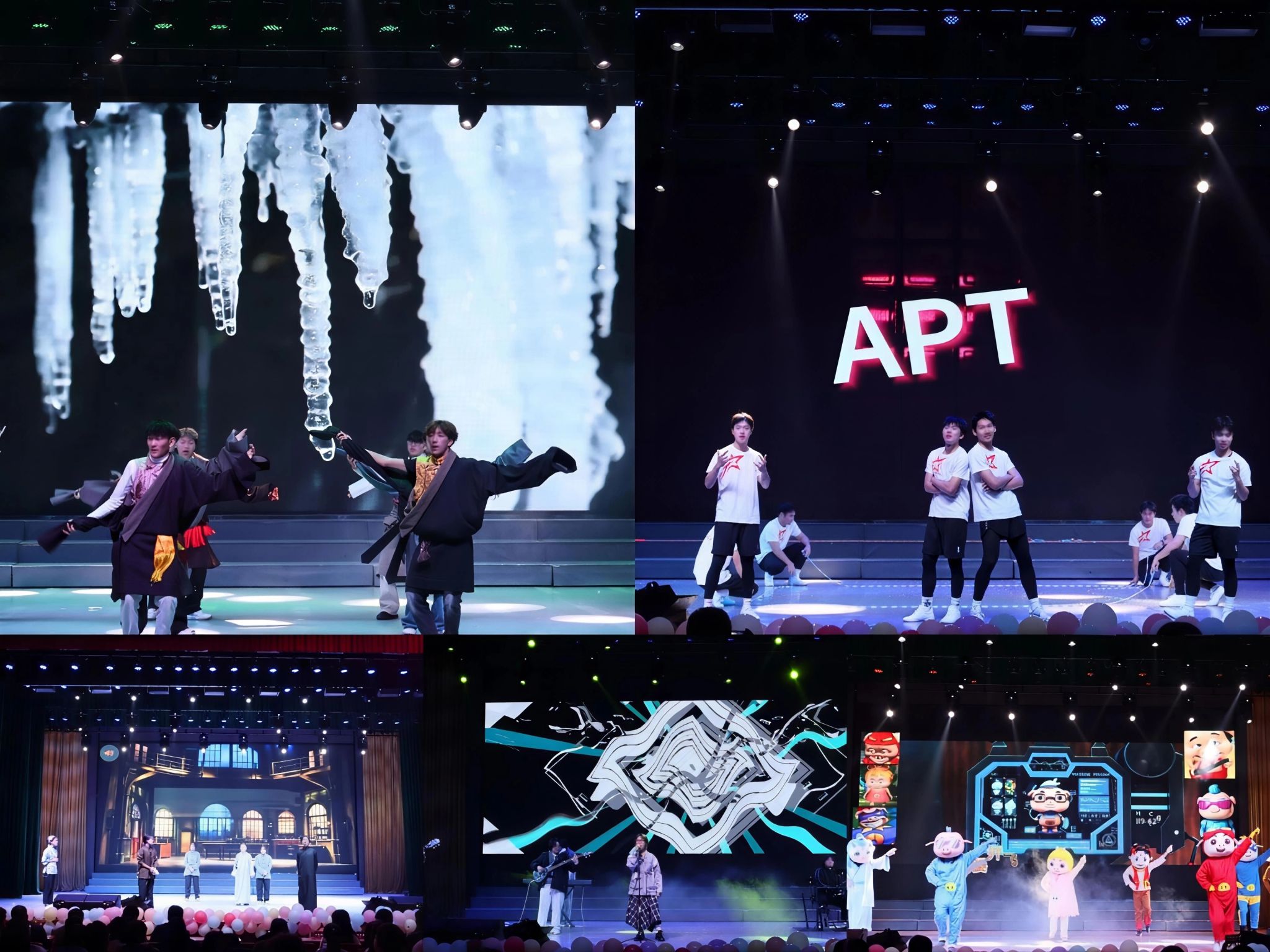 热情澎湃,点亮舞台。舞蹈《达拉崩吧》创意十足,演员通过丰富肢体语言和生动表情,演绎充满奇幻色彩的故事,给观众带来全新视觉体验;舞蹈串烧《第一天》串联多首经典曲目,风格多样、衔接自然,为现场带来持续不断的惊喜;团委学生会带来的话剧《星火》以历史为背景,通过生动剧情与饱满人物形象,传递坚定的理想信念与爱国情怀,演员的精彩表演赢得观众阵阵掌声;最后,舞蹈《Batter Up&Antidote》演员舞姿飒爽、气场全开,以无限青春活力为节目表演环节画上圆满句号。